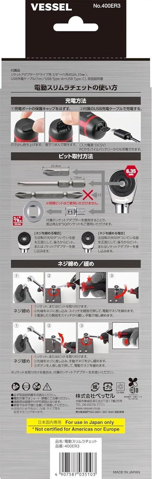 VESSEL 400ER3 Cordless Electric Slim Ratchet