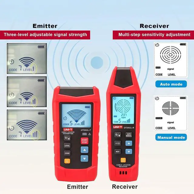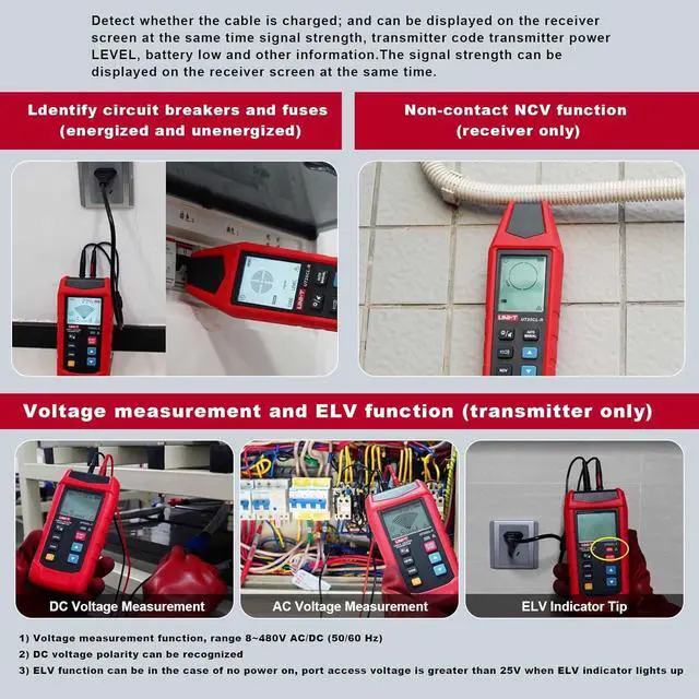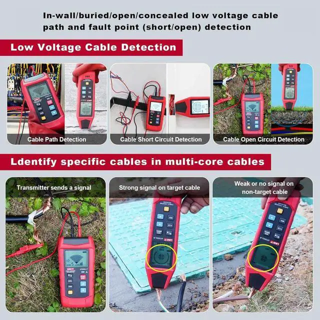 UNI-T Advanced Circuit Tracer KitThis reliable circuit tracer kit(UT25CL) is used for low voltage cable path and fault point (short circuit/open circuit) detection in wall, buried wires, open circuit, and concealed circuit. Identify specific cables in multi-core cables, circuit breakers and fuses (energized and unenergized). Measured accurately, and easy to operate.