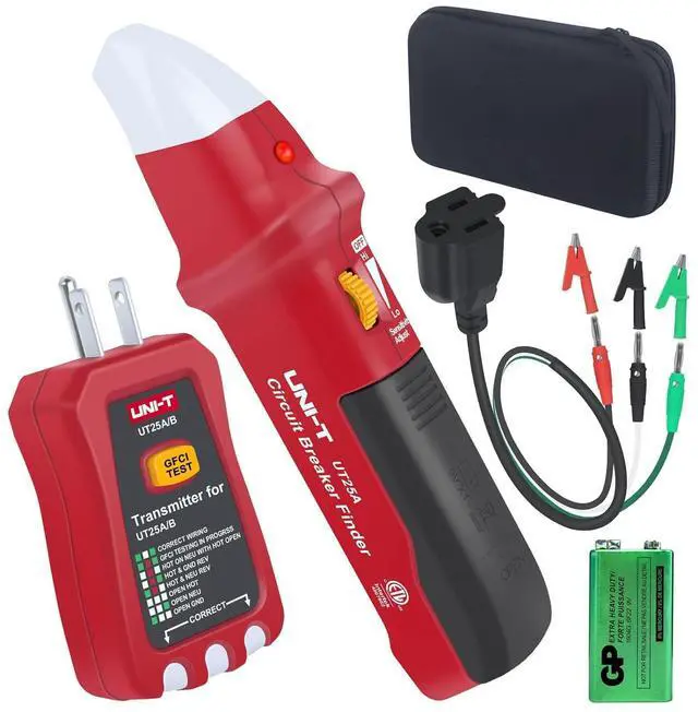 Package IncludedComes with 1 UT25CL wires tracer set, includes 1 outlet tester, 1 circuit breaker finder, 1 pair of dual direct-plug test line (red + black), 1 pair of alligator clips (red + black), 1 pair of connected penlight lantern head probe (red + black), 1 AC polarity plug line, 1 auxiliary grounding nail, 1 manual, 1 certificate of conformity, 6pcs 1.5V AA alkaline batteries, 6pcs 1.5V AAA alkaline batteries, 1 sturdy EVA tool case and 5 months warranty for transmitter and receiver.
