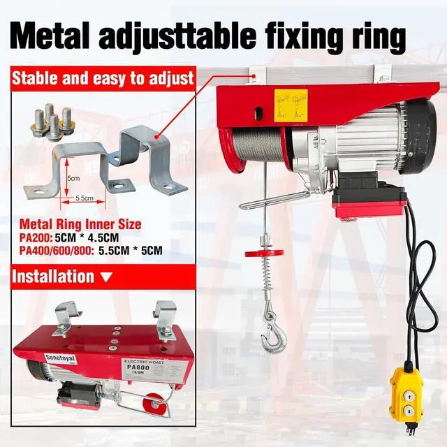 EASY TO INSTALL: Electric hoist 110 volt can be directly hanged on the ceiling using metal or solid wooden strips. Moreover, overhead winch is equipped with an emergency stop switch and electromagnetic braking system to avoid abnormal sliding. We also provide a 2200-pound - 6.56-foot lifting belt to help you complete lifting tasks immediately!