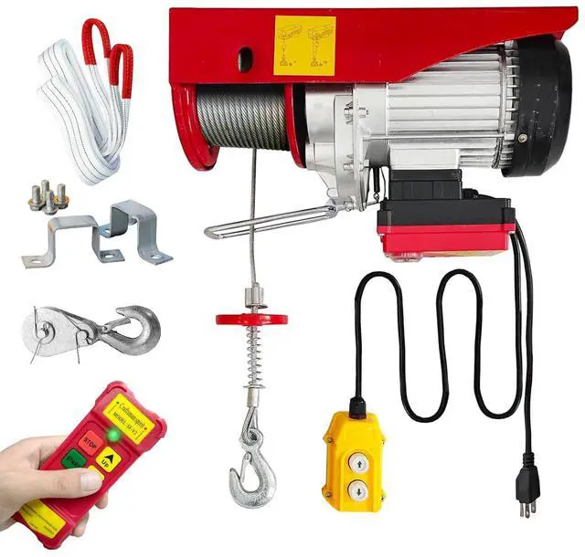 WIDE APPLICATIONS: The power hoist widely used in garages, factories, warehouses and homes,construction sites,carmakers,railway construction,as well as by professionals and hobbyists.This garage lifting machine can easily lift small engines, transmissions, large workshop tools, or construction supplies,suitable for repairing boats, cars, lawn mowers, golf carts, home decor, engines, boulders, trees, etc.