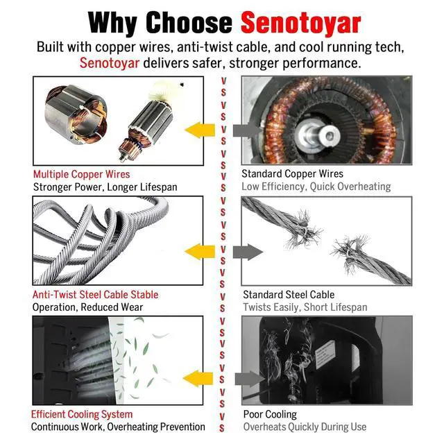 POWERFUL MOTOR: The high-quality motor provides 1350W of strong power, which can withstand large forces without causing deformation of the power winch. In addition, the large cooling fan can quickly cool the machine to avoid overheating. Thus, this powerful motor ensures high-efficient work, saving you more time and energy.