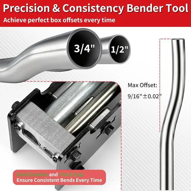 Proven Accuracy & Reliable RepeatabilityConduit bender combined stable hydraulic mechanism and the fixed stop yields exceptionally consistent, high-quality offset bends. The maximum offset is precisely calibrated to 9/16" (14.3mm) with a remarkably tight tolerance of ±0.02" (0.5mm). This precision ensures a perfectly flush and secure fit between conduit and electrical boxes, critical for both the safety and polished finish of any installation.