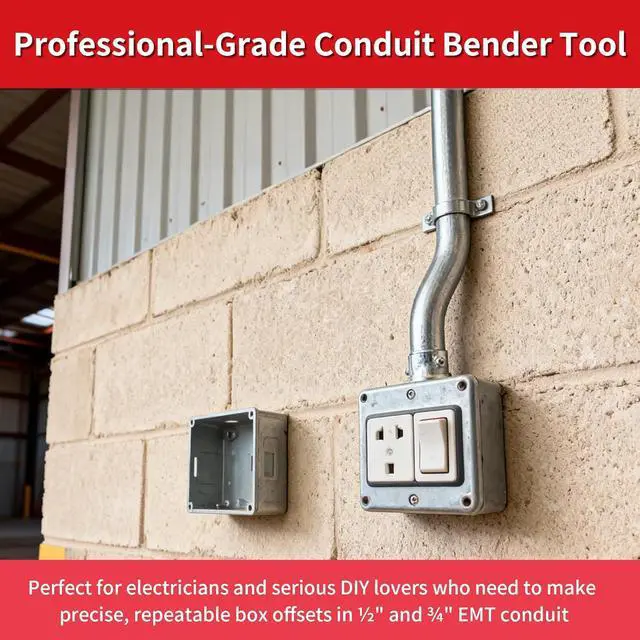 Dual-Size Design, Engineered for ClarityConduit bender engineered for efficiency, this single tool masters the 2 most common conduit sizes: 1/2"and 3/4"EMT. It features dedicated, physically separated grooves for each size. This design eradicates any chance of using the wrong size, preventing costly errors and material waste while elevating both the speed and professionalism of your work.