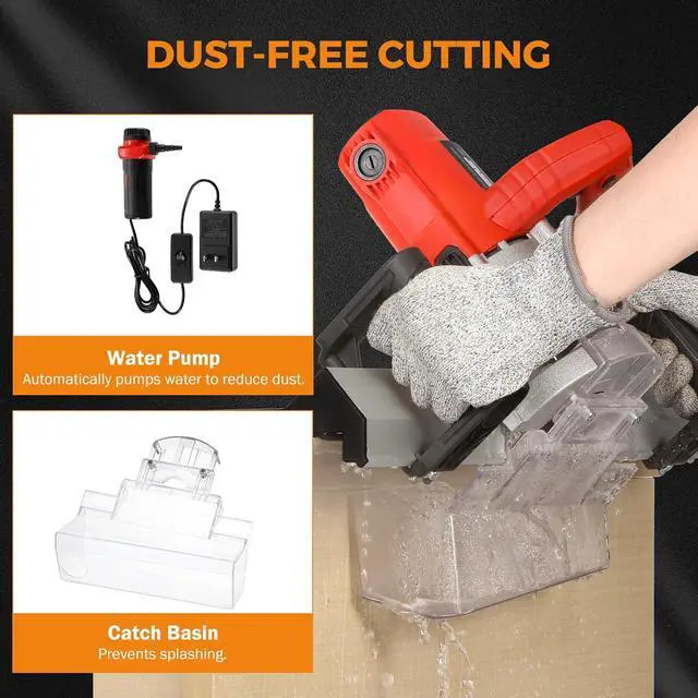 Dust Reduction: Comes with a 12V mini water pump and a 2.5-meter (98.4-inch) water pipe to reduce dust in the work environment, effectively solving dust disposal problems.