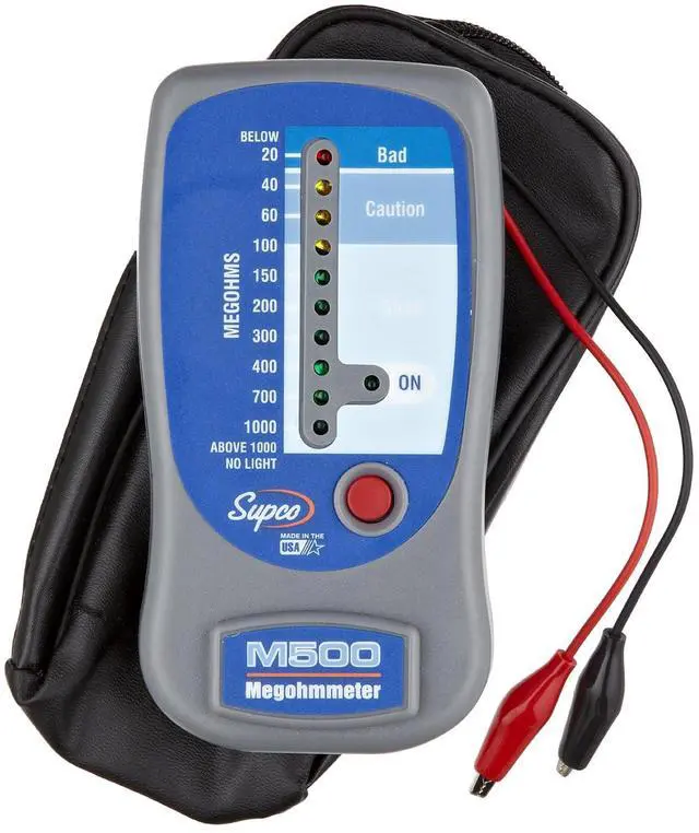Supco M500 Insulation Tester/Electronic Megohmmeter with Soft Carrying Case, 0 to 1000 megohms Black