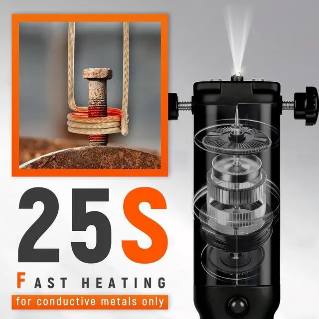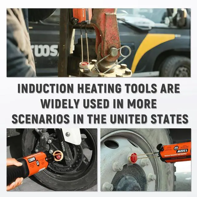 Wide Range of Uses Magnetic induction heater kit mainly used for heating threaded nuts and rusty screws to loosen them. The heat induction tool can also be used for automobiles, machinery, and various small Heat treatment of metal parts such as gears, pulleys, pulley, bearings, etc.