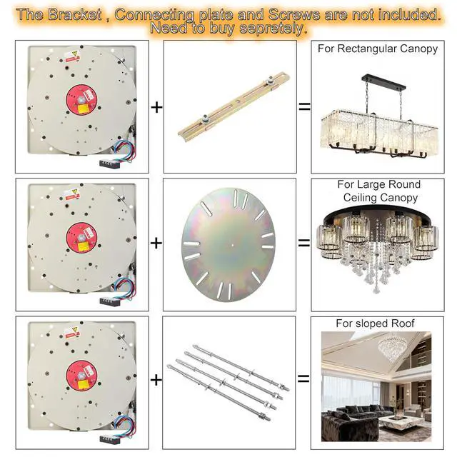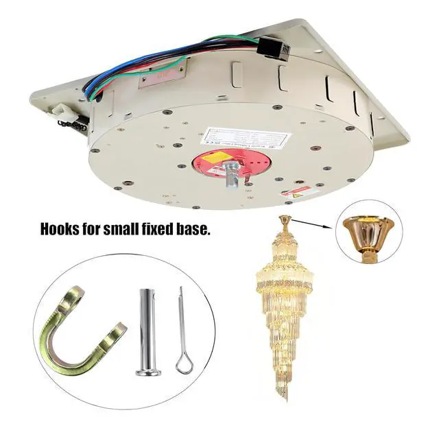 [CONTROL METHODS]Remote control use 1pc 23A 12V battery(Include).Max capacity 110 lbs, and and the lifting speed is 51"/min.With chandelier hoist cover.Chandeliers, Wall switch, Connecting plate, Bracket, 30cm Screws and Covers are not included.