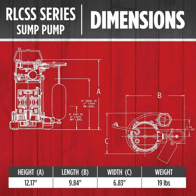 3. Contractor-preferred snap-action float switch for reliable automatic operation; activates pump when water reaches 9 to 11 inches, shuts off when water falls between 3 and 5 inches