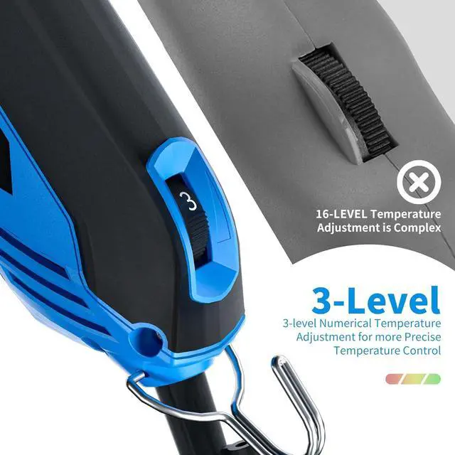 3 Gears Heat ControlNo more cumbersome 16 gears adjustments. This styrofoam cutter features three different gear settings of heat control mechanism to regulate the temperature of the blade. This feature ensures optimal cutting temperature for different materials, preventing overheating or scorching. You can easily adjust the temperature and power using a knob on bottom of foam cutting tool.