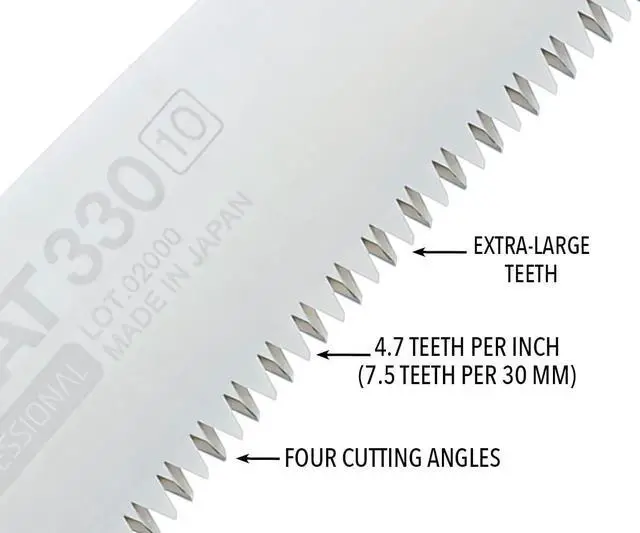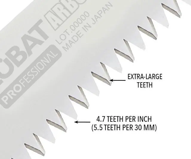 13-inch (330mm) blade length, 1.5mm blade thickness, 4.7 teeth per inch (5.5 teeth per 30mm) X-Large teeth configuration, Cut capacity 6.5"