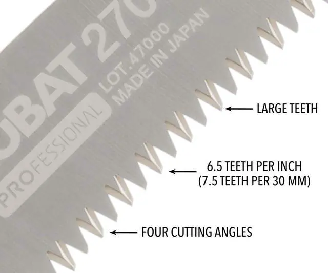 13-inch (330mm) blade length, 1.5mm blade thickness, 4.7 teeth per inch (5.5 teeth per 30mm) X-Large teeth configuration, Cut capacity 6.5"