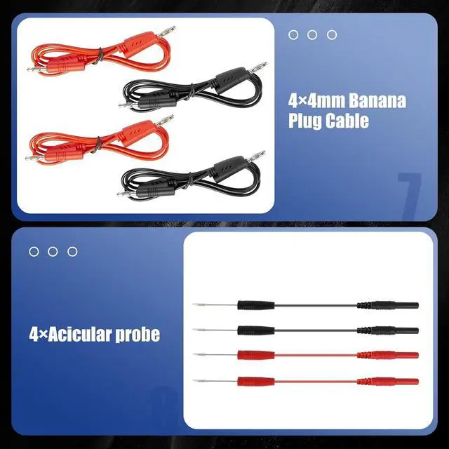 High Quality MaterialsStandard 4mm nickel-plated banana plug, test leads are copper core flexible wires; nickel-plated copper alligator clips; standard probe and back probe are made of stainless steel.