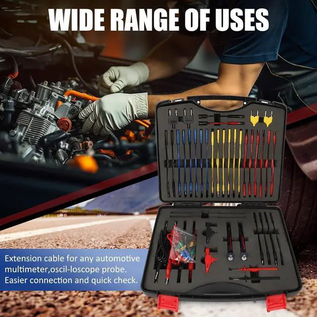 Wide ApplicationThe multimeter test lead kit is suitable for any electric meter, oscilloscope probe extension, and suitable for most vehicles in Europe, the United States and Japan. Use this kit with measurement tools like multimeters and oscilloscopes to get the most out of it.