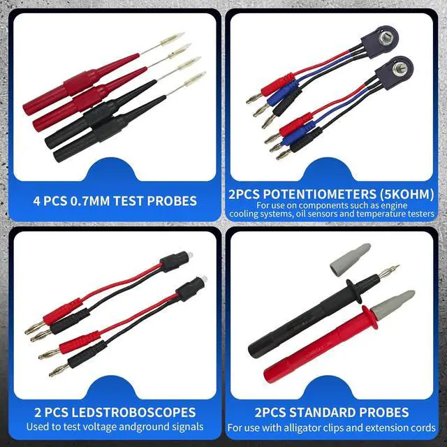 EASY TO CARRYThis car test lead kit includes a portable black storage case with grooved foamkeeps all parts organized, prevents loss, and ensures long-term use.