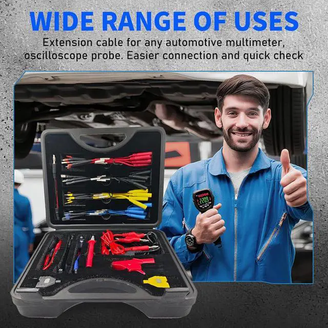 WIDE APPLICATIONThis multimeter test lead kit works with any multimeter, extends oscilloscope probes, and fits most European, American, and Japanese vehicles. Pair it with tools like multimeters and oscilloscopes to maximize its use.