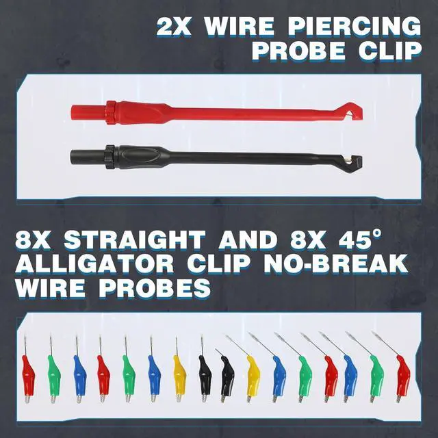 Wide Compatibility & Universal 4mm Banana Plug-Designed with standard 4mm banana plugs, this test lead set is 100% compatible with any automotive multimeter, oscilloscope, or diagnostic scanner. It covers most terminal sizes from US, European, and Japanese vehicle brands, making it a "one-and-done" solution for checking Hall sensors, fuel injectors, and solenoid valves