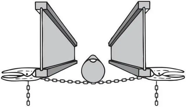 Like an extra pair of hands, this job-site helper holds ductwork in place with clamps and a chain during installation until permanently secured. A double-ended keyhole allows easy chain adjustment and locking in a horizontal clamping position, required for engineered joists, without the need to tie the chain around the clamp. Formed teeth hold the clamp securely in place on joist.