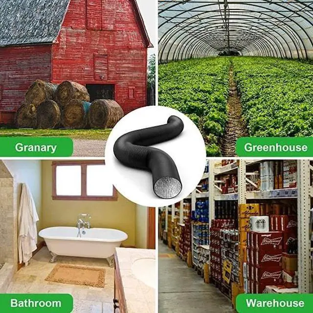 * Flexible ducting: the aluminum foil duct tube can bend in any direction, allows you to accommodate most space restrictions. Flexible length for inline fan, quick and easy to set up