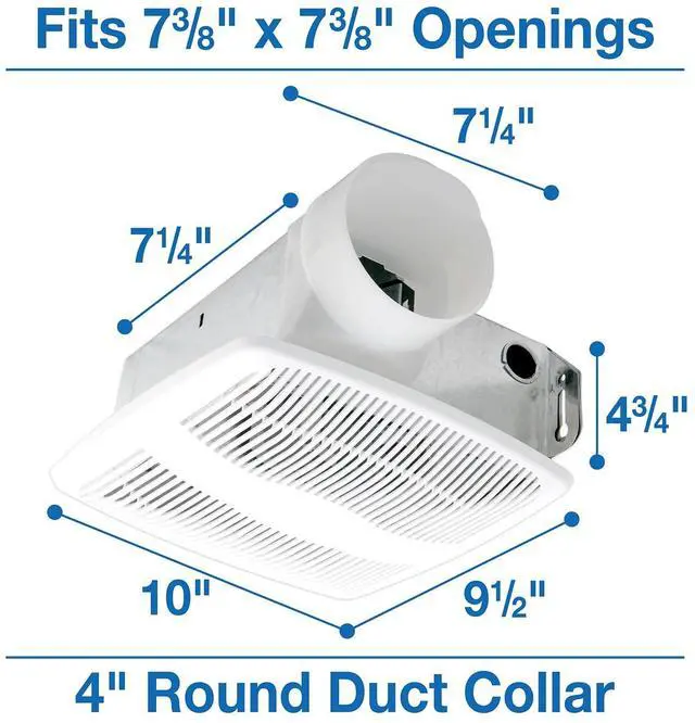 The Air King AS54 Advantage Exhaust Bath Fan is an economical way to provide ventilation at moderate sound levels without sacrificing style and function. This exhaust fan is ideal for smaller rooms, such as bathrooms, powder rooms and utility rooms. With a speed setting operating at 50-CFM at 3.0-Sones, the AS54 is suitable for bathrooms up to 50-square feet and other rooms up to 60-square feet. This exhaust fan comes complete with a back damper for quiet operation and a 4-inch duct collar for duct ventilation. The AS54 is simple to set up using the double thick keyhole mounting tabs for an easy installation process. This exhaust fan is UL listed for installation over a tub or shower on a GFCI circuit. The AS54 measures 7-1/4-inches by 7-1/4-inches by 4-3/4-inches and features a 23-gauge metal construction with a white finish. The Air King AS54 Advantage Exhaust Bath Fan comes with a 1-year limited warranty. Air King offers a full line of industrial grade and commercial grade air circulating fan solutions to meet almost any need you might have. Whether your need is in industrial settings such as manufacturing plants and warehouses or more commercial setting such as offices, schools or hospitals - Air King has the perfect solution for you. Powerful motors that last for years and years are what Air King's Air Circulators have come to been know as and we are not stopping now.