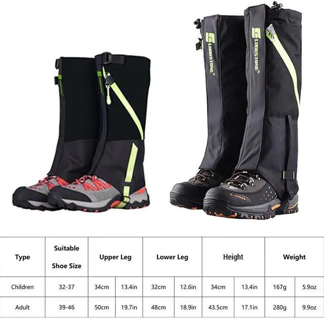 For a more secure fit, the gaiters feature an adjustable elastic strap at the top, ensuring a tight wrap around your legs and preventing slippage.