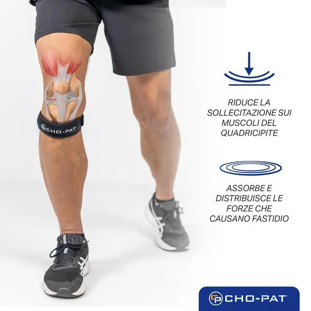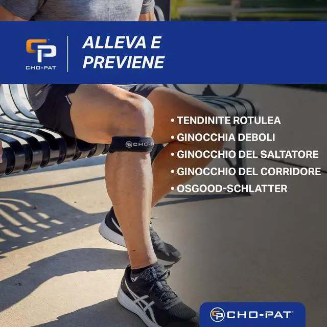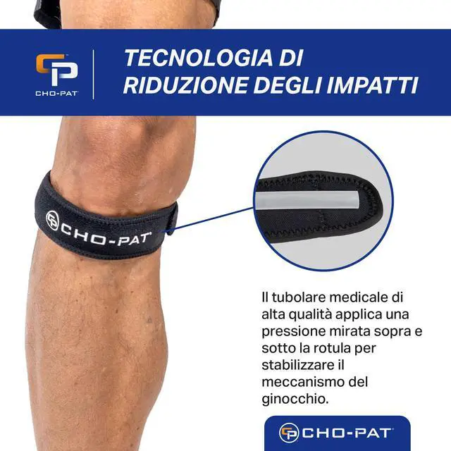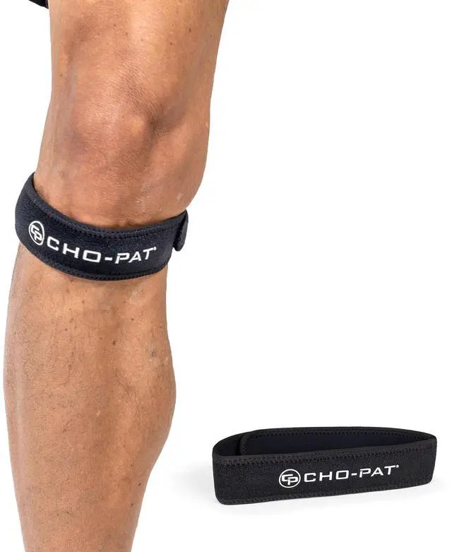 The NEW Cho-Pat Patella Knee Strap is a one-size-fits-most product. The Cho-Pat Patella Knee Strap applies pressure on the tendon below the kneecap for maximum relief and effectiveness, supporting the knee as it bends and straightens.