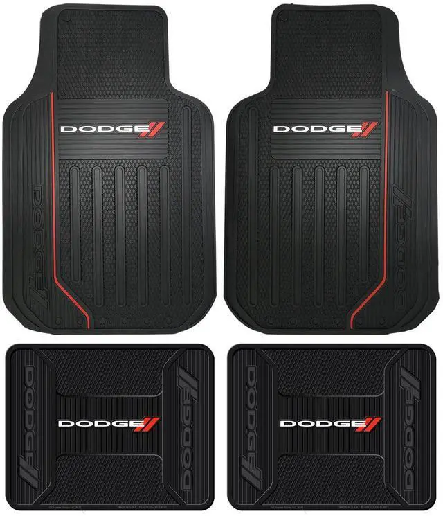 This Listing is for 4pc Front & Rear Rubber Floor Mat set. Front mats approximated dimensions are 26.5 x 17.75 x 11 inches. Rear Mats Approximate Dimensions 13.75 x 16.25 Inches. Floor mats are made out of high durable Quality rubber material. May be trimmed for a better fit. They are made of long lasting heavy duty rubber material that will protect your vehicle from water, dirt, snow, mud and other debris. They are very easy to clean, just use soap and water. Looks great in all vehicles. Designed with Vibrant colors; which, are molded in colors that will not fade. These Items are a Universal product; therefore, will fit MOST vehicles. Floor mats not only will it protect your vehicle, but customize it to fit your own taste and personality. If you have any questions regarding these listing, please feel free to contact us via email.