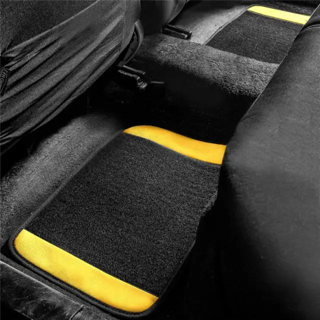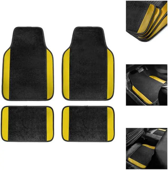 Set of two front floor mats and two rear floor mats. Perfect size to fit most sedans, crossovers, SUVS, Trucks and Vans.