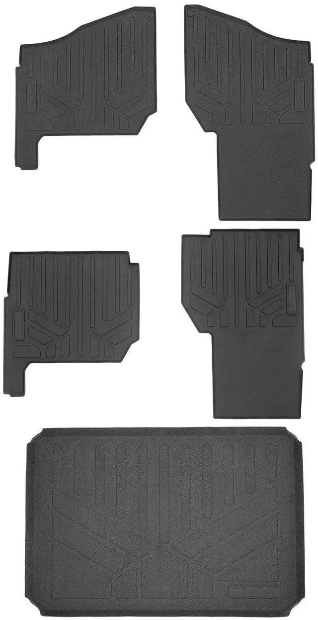 • SMARTLINER 2 Row Rubber Floor Liners & Bed Mat Liner Set Black Compatible With 2019-2021 Polaris Ranger Crew XP 1000 (Only Fits 6 Passenger Models)