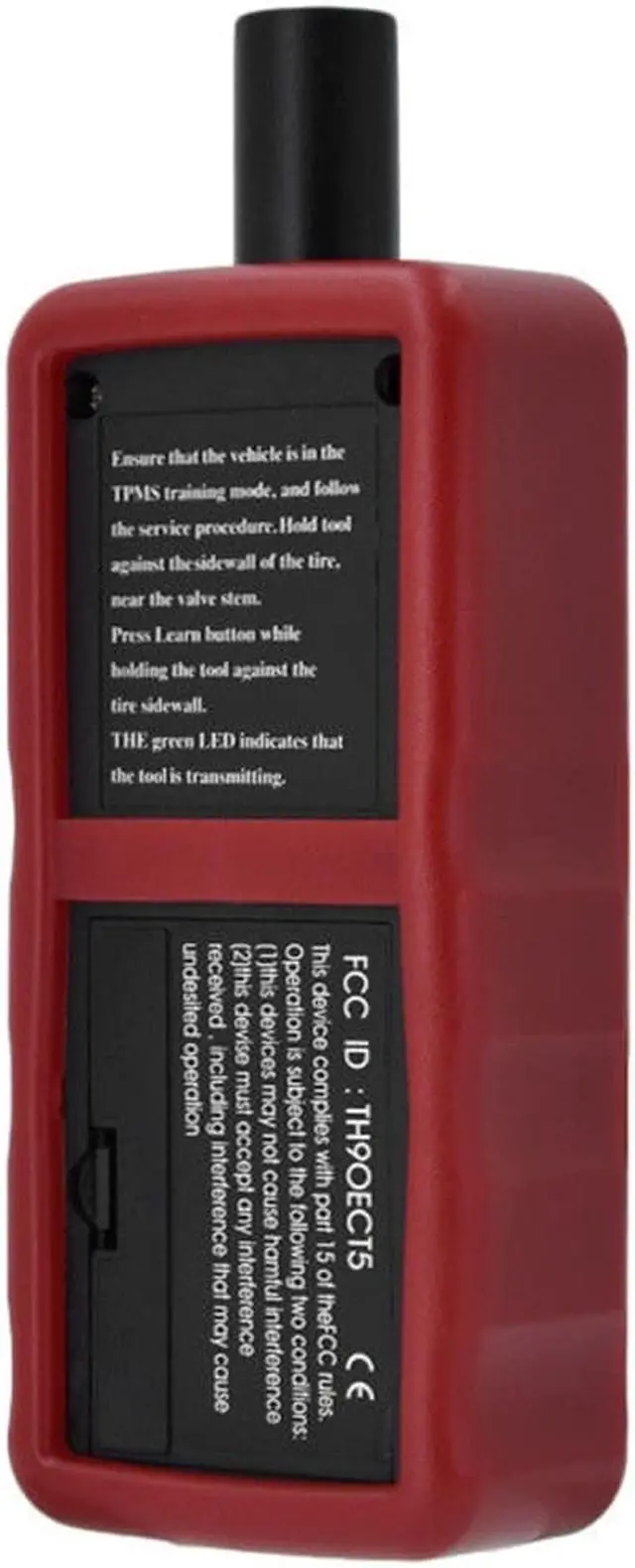 (2) Starting from the left front tire, the antenna of the dedicated tool for tire pressure monitoring is facing upwards against the tire sidewall near the rim of the valve stem to start the antenna. Press and release the start button and wait for the speaker to emit a chirp. Once the speaker is chirping, the sensor information is read and the turn signal to be read at the next position will light.