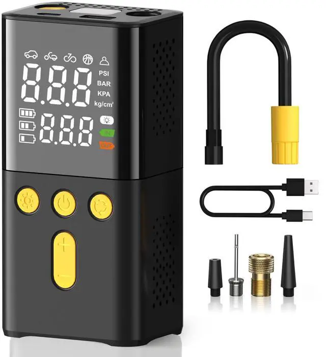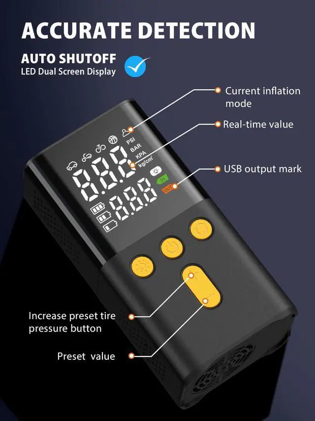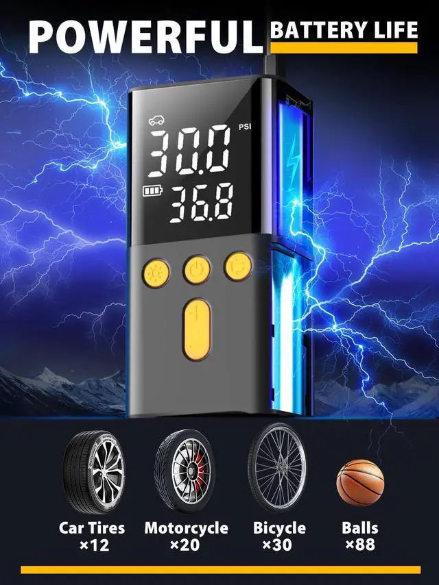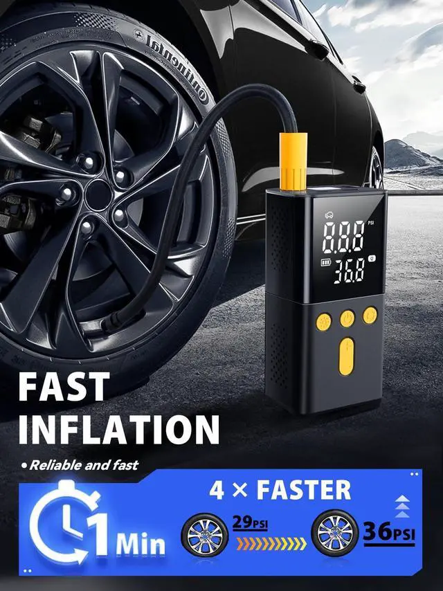 BAIPENY Portable Tire Inflator for Car 150 PSI, 4X Faster Car Tire Pump with Pressure Gauge, Large Dual Digital Screen and Auto Off Function for Car, Motorcycle, Bicycle, Balls