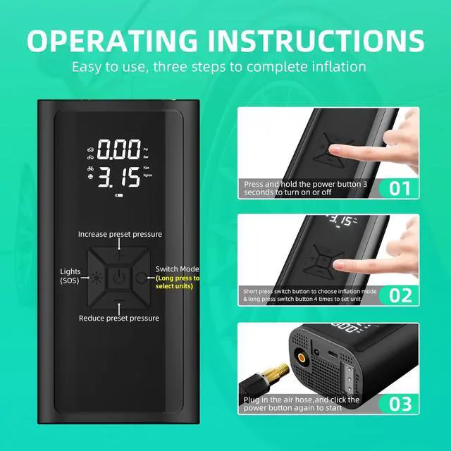 Air pump are emergency equipment, usually used to small or mid cars. For large cars (e.g.: Off-road vehicles, pickup trucks,vans, and RVs.), the inflating speed is relatively slow and the battery consumption is fast. This is a normal phenomenon.