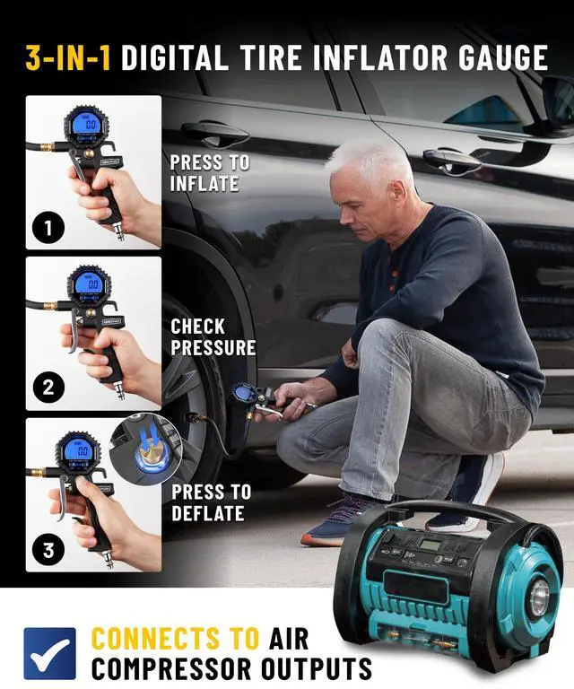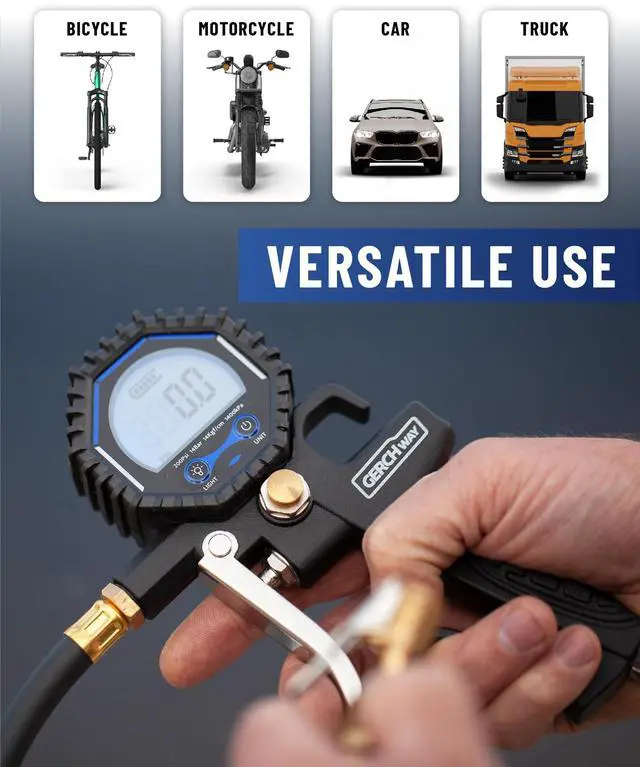 | Type | Tire Pressure Gauge | Tire Pressure Gauge | Digital Tire Pressure Gauge Rechargeable | 3-in-1 Analog Tire Inflator Gauge | 3-in-1 Digital Tire Inflator Gauge |