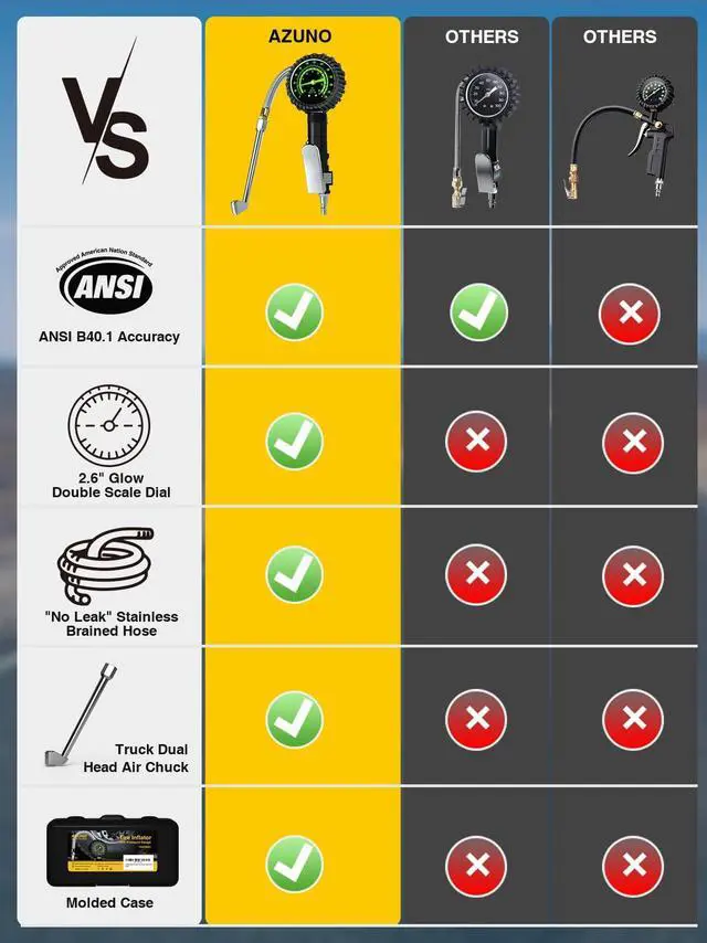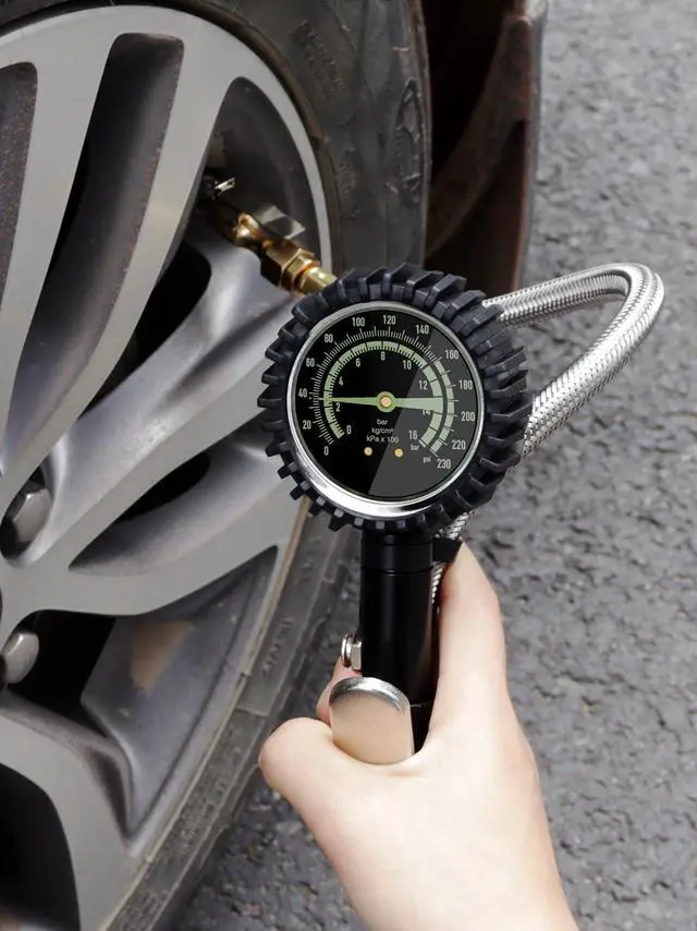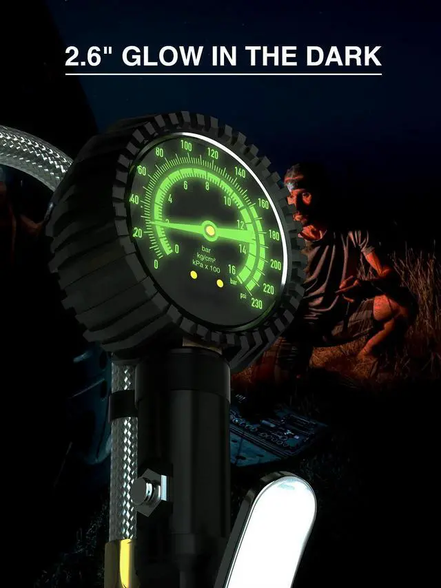 Heavy Duty Tire Pressure Gauge, Tire Inflator Gauge 230PSI Air Chuck Air Compressor Attachments, with Steel Braided Hose, Large 2.6" Glow Dial & Quick Connect Coupler, for Truck/Car/SUV/RV/Bike