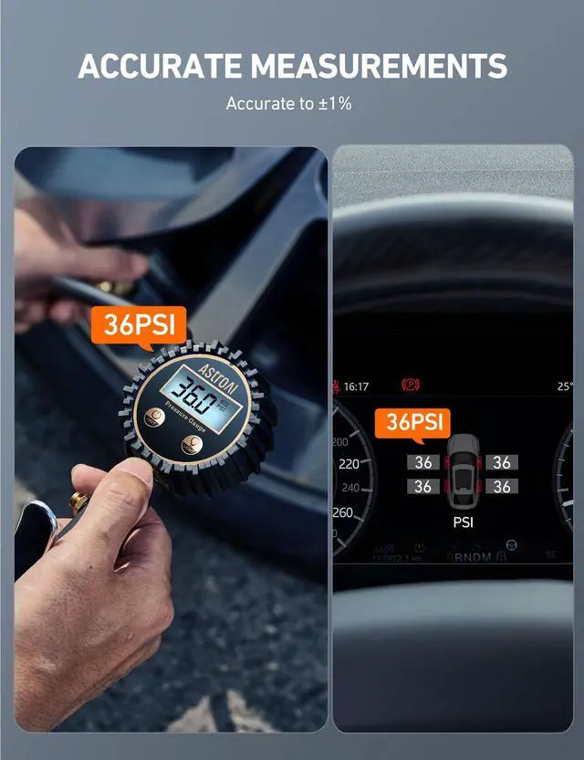 • ADVANCED ACCURACY: Professionally calibrated to always return an accurate reading within 1% of the exact pressure of your tire. Accurately measures FOUR DIFFERENT UNITS in a range from 3-250 PSI (0.2-17.2 Bar; 0.21-1724 Kpa; 0.2-17.5 kg/cm^2). Stocking Stuffers for Men