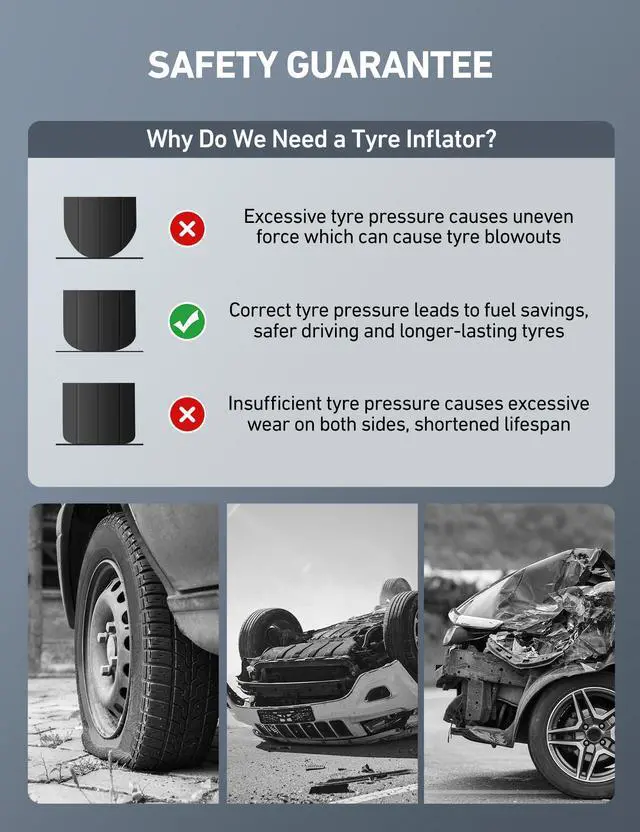 • INCREASED SAFETY: Properly inflated tires provide better performance in all weather conditions, decreasing the likelihood of flats, explosions, and crashes; Increase your MPG and save money on fuel costs and tire wear