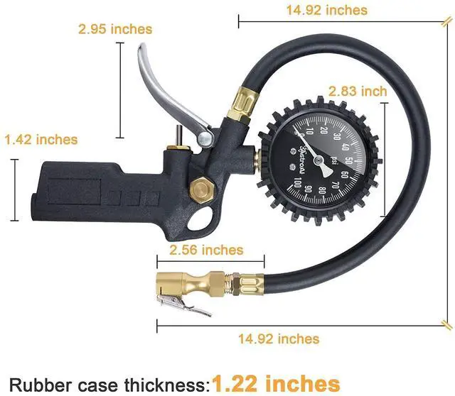 3-IN-1 Multifunction: Our air pressure gauge has 3 functions of deflation, inflation, tire pressure check. Press trigger to inflate tire, press reset button to deflate tire.