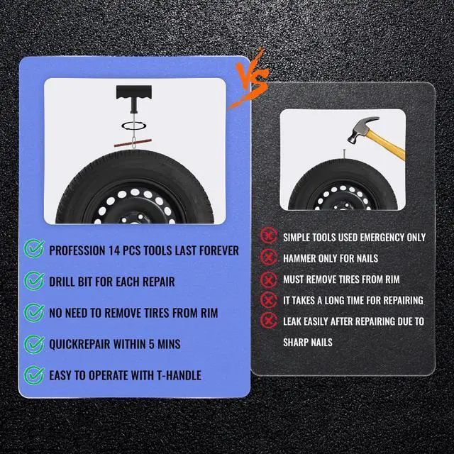 Easy-to-Use Tire Plug Kit: The kit includes everything you need to seal punctures quickly, including tire plugs, insertion tools, and a reamer. Its designed for fast and simple repairs, getting you back on the road in no time.