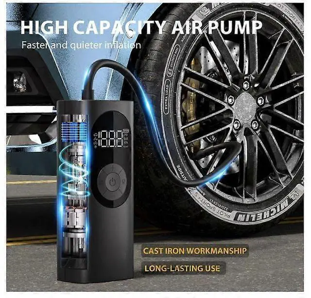 High-performance portable air compressor with a powerful motor for rapid inflation, reaching up to 150 PSI for cars, bikes, motorcycles, and sports balls.