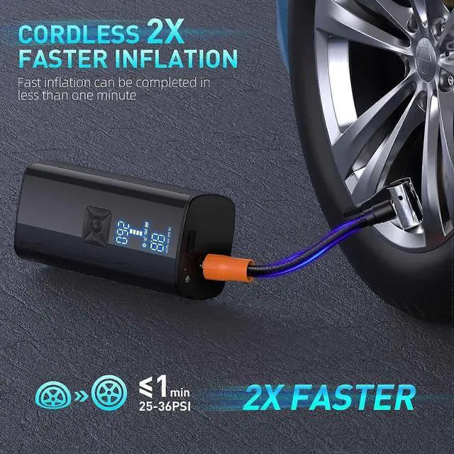 Experience rapid, precise inflation with our upgraded portable air compressor, featuring a powerful 8000mAh battery and advanced digital pressure gauge for effortless use.