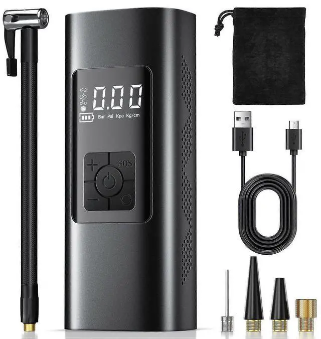 **Versatile Nozzle Set**: Includes 4 nozzles for tires, sports balls, inflatables, and morecompact storage bag for easy portability.
