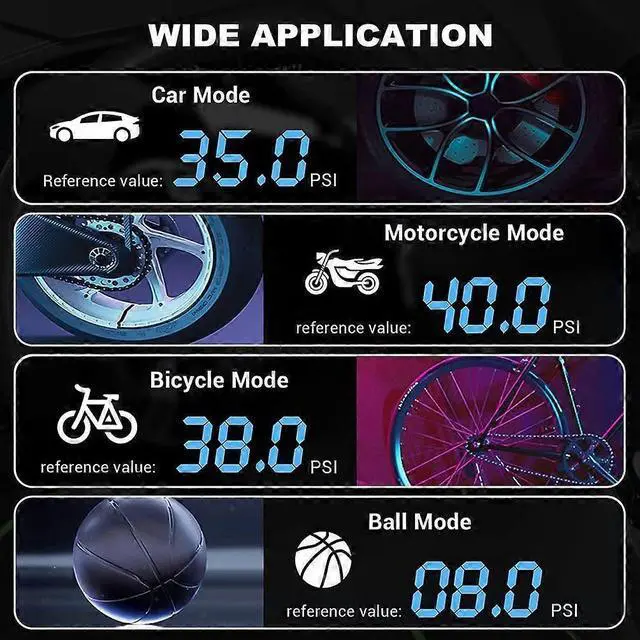 Ideal for roadside emergencies, travel, and everyday inflation of car tires, bikes, motorcycles, and sports equipment. Compact and cordless, it ensures reliable performance wherever you need it.