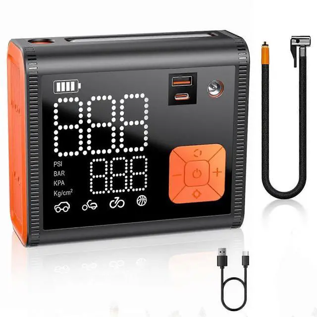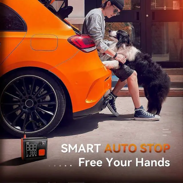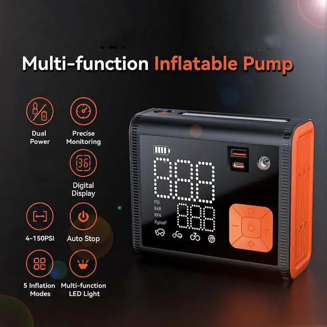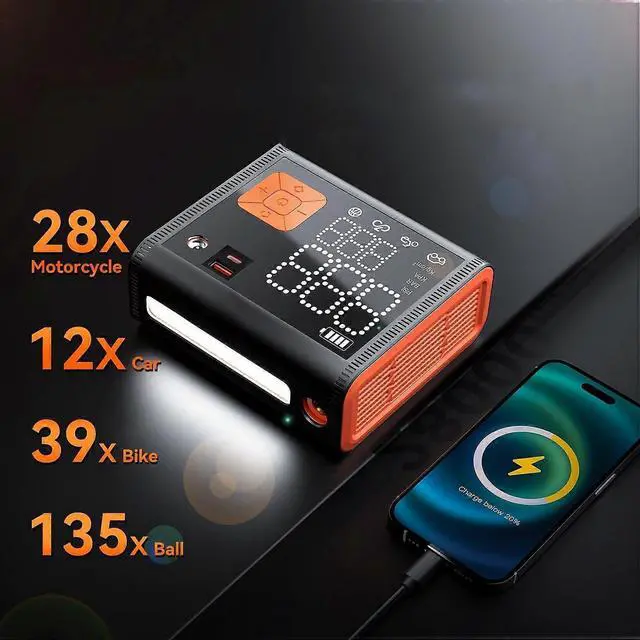 **Smart Features**: Includes high-brightness lighting, alert functions, and dual LCD displays for easy, cordless operation on the go, making it a reliable portable air pump.