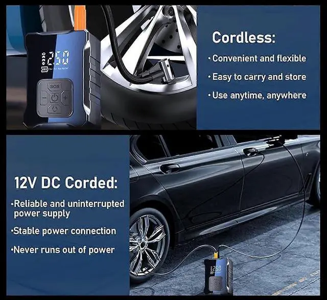 Experience rapid, cordless inflation with our 150PSI portable air compressor, designed for convenience and reliability.