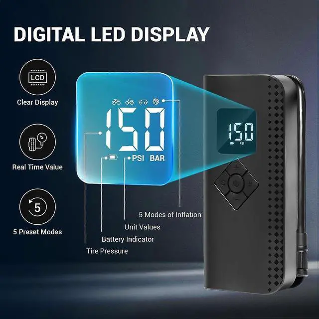 **Accurate LCD Display**: Real-time pressure monitoring with auto shut-off at your preset value to prevent over-inflation.