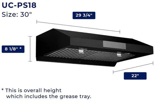 Save money and time! The UC-PS18 under cabinet range hood is designed with Three-Way Venting System to fit most kitchen vent openings. This is perfect for a simple kitchen upgrade or a complete kitchen makeover.
