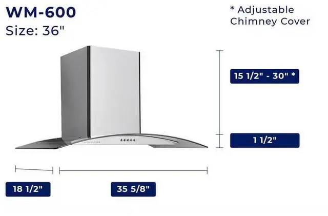 Enhance your kitchen with the elegant European styling of the Hauslane WM-600 Wall Mount Range Hood. Featuring a stunning combination of stainless steel and tempered glass, this modern canopy hood adds a luxurious touch to any cooking space. Designed for both form and function, it delivers strong ventilation through a single high-performance motor that efficiently removes smoke, grease, and odors for a fresher kitchen. Available in both 30-inch and 36-inch models, the WM-600 includes effective charcoal filters (a $25 value) for easy ductless conversion. With its sleek design, easy-to-clean filters, and quiet operation, this range hood is an ideal upgrade for home chefs who value performance and sophistication.