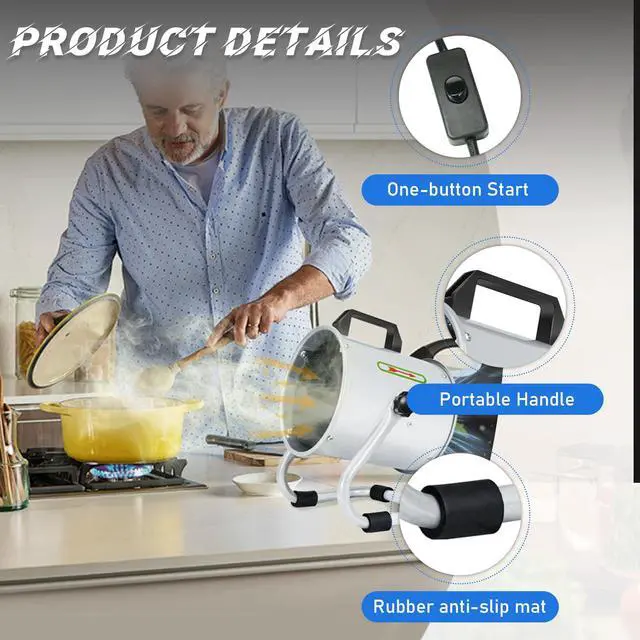 One-button Start: The portable range hood is plug and play, press the button on the hood to turn it on