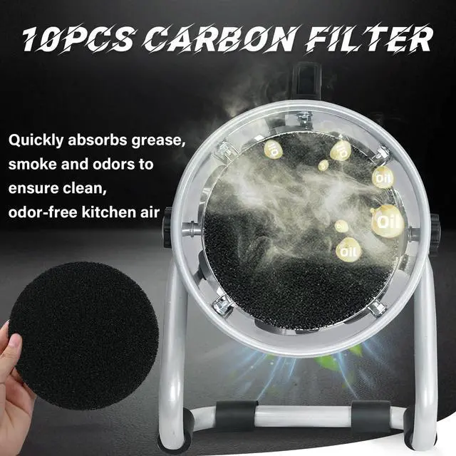 10Pcs Carbon FilterPortable range hood with 10Pcs charcoal filters, which can quickly absorb grease, smoke and odors, ensuring fresh and odor-free kitchen air, made for indoor use