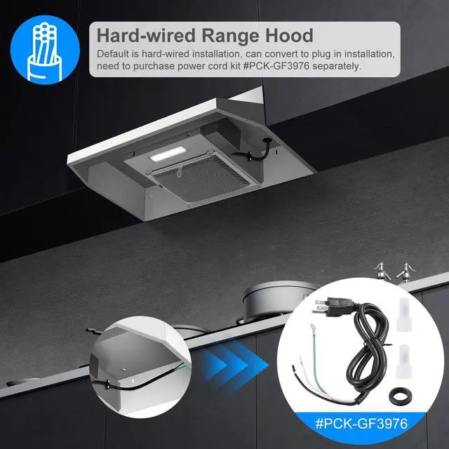 It is a hard wiring vent hood, purchase a part # PCK-GF3976 to convert it to plug if need.